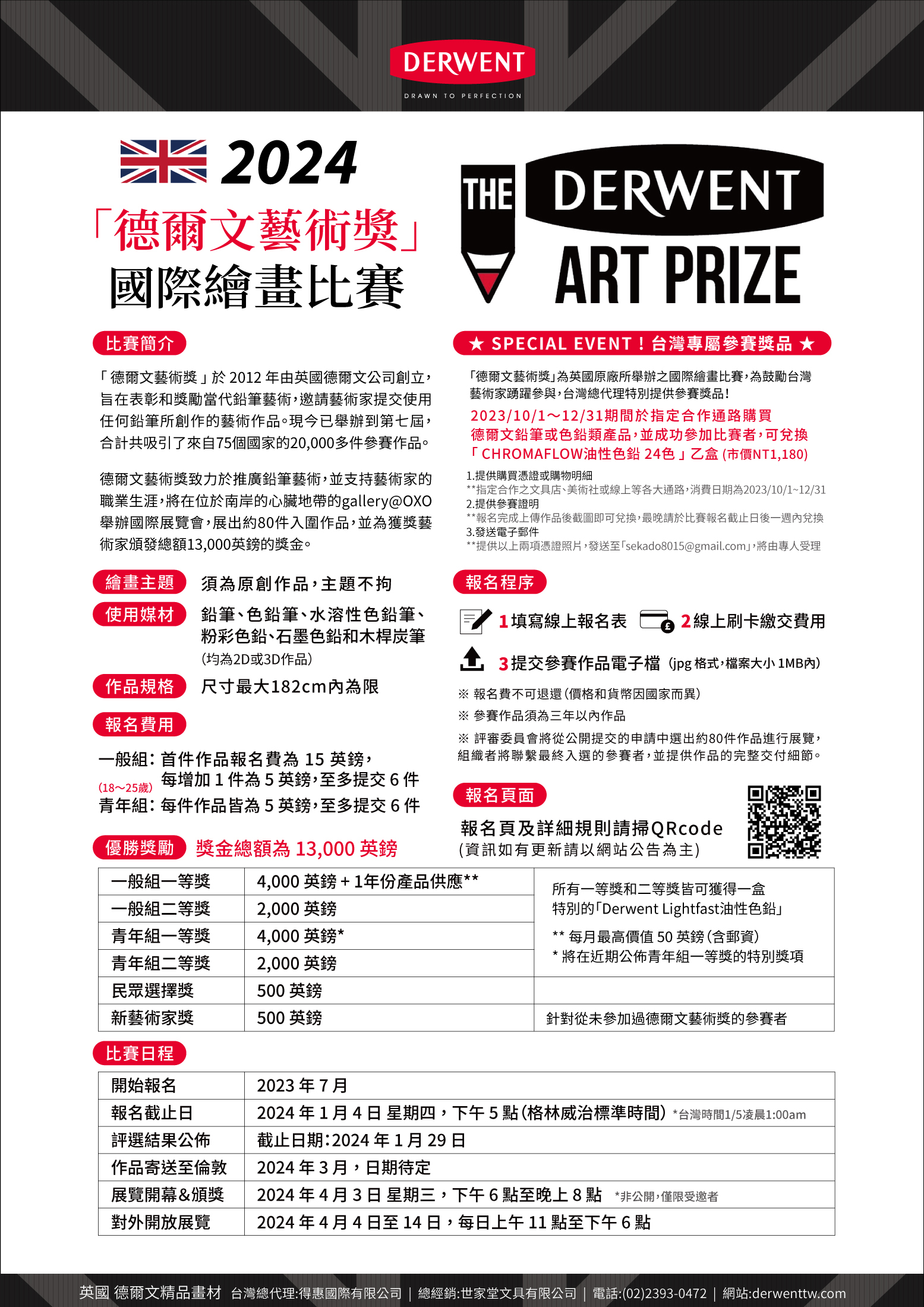 所有一等獎和二等獎皆可獲得一盒特別的「Derwent Lightfast油性色鉛」