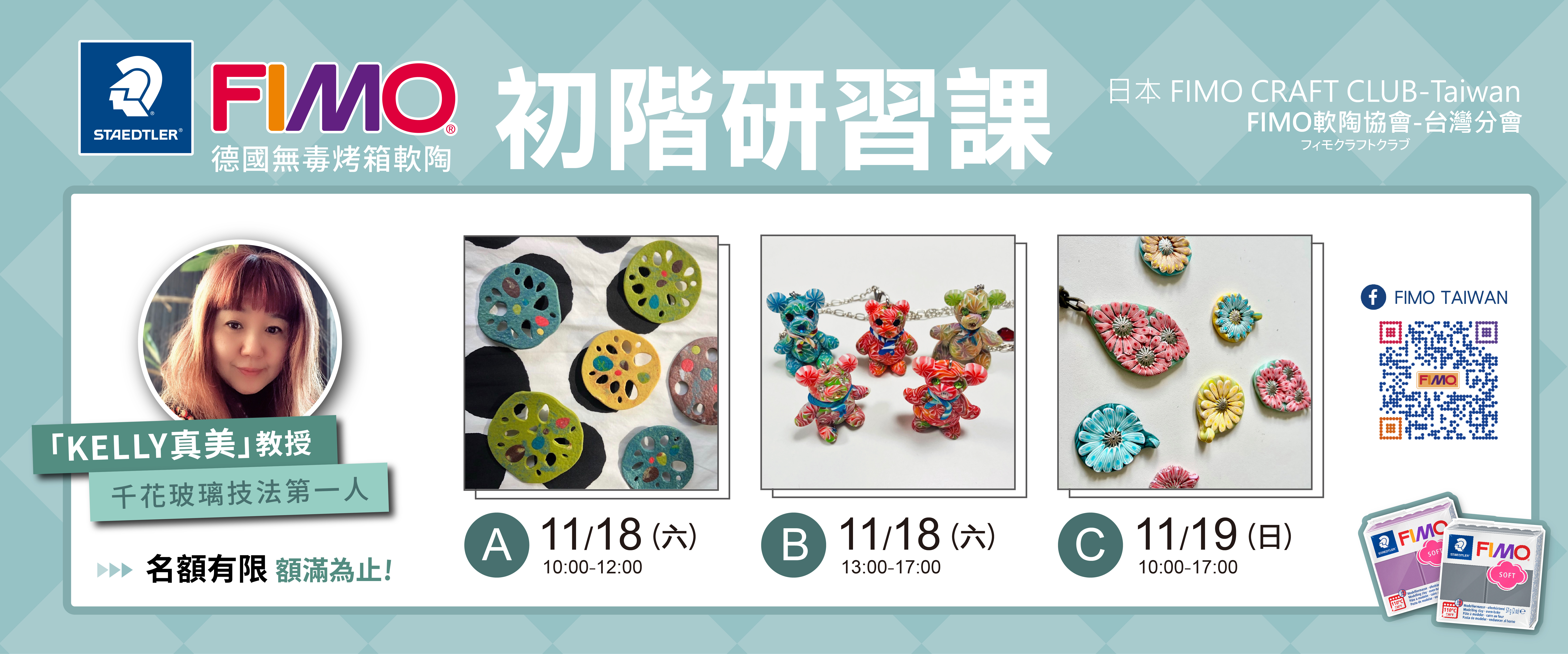 KELLY MAMI教授不僅是傢飾領域的大師級人物,更是千花玻璃技法的第一人,作品細膩精緻,此次更規劃三堂不同主題課程,歡迎喜愛軟陶手作的您報名參加!