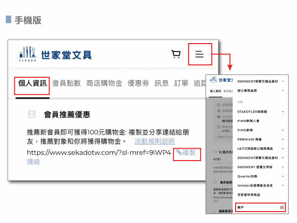 Step2. 於個人資訊頁面複製「推薦連結」傳送給朋友