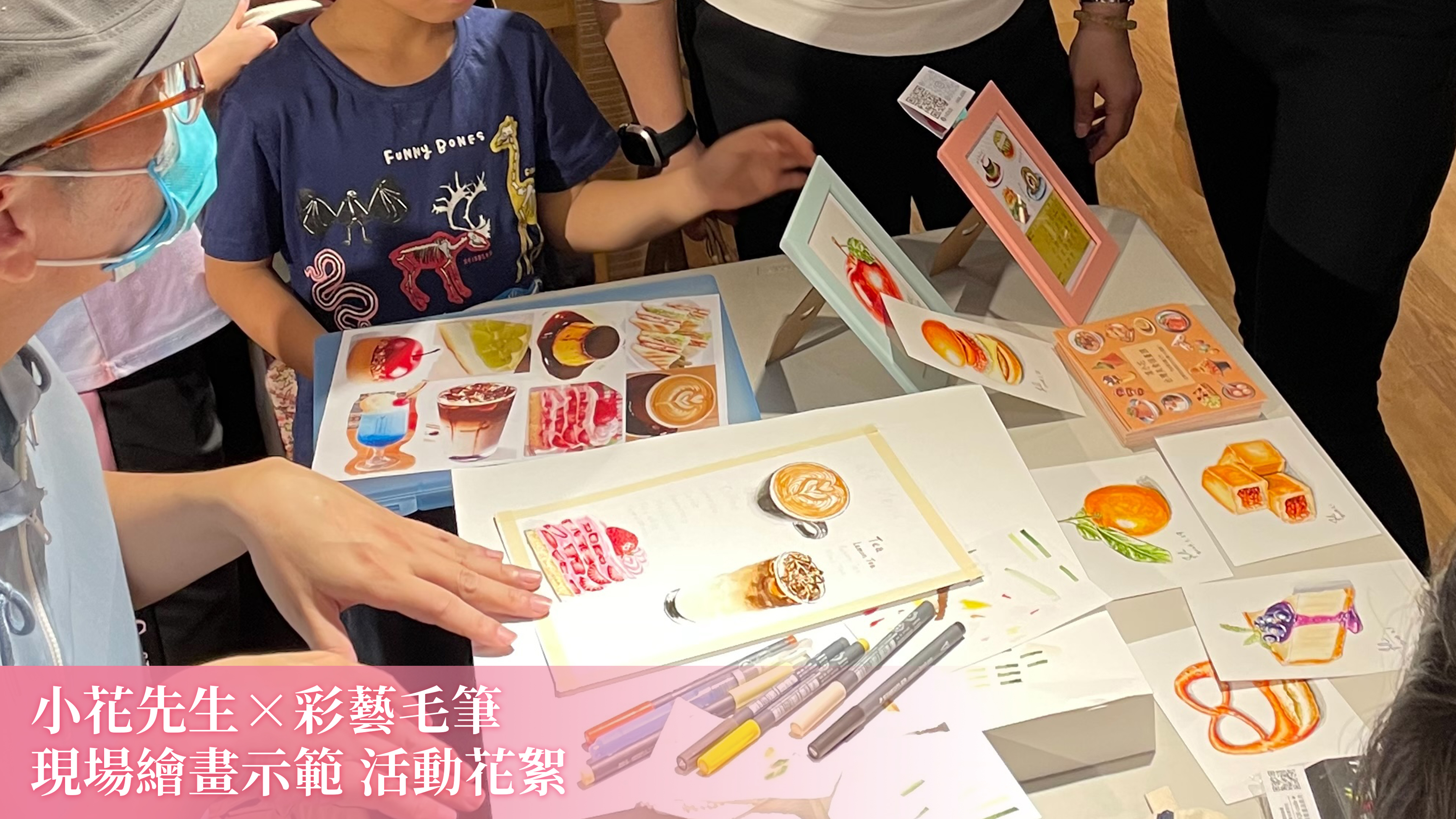 施德樓邀請到繪畫教學經驗豐富的凜小花老師在誠品桃園統領店現場示範「彩藝毛筆」繪畫技法。