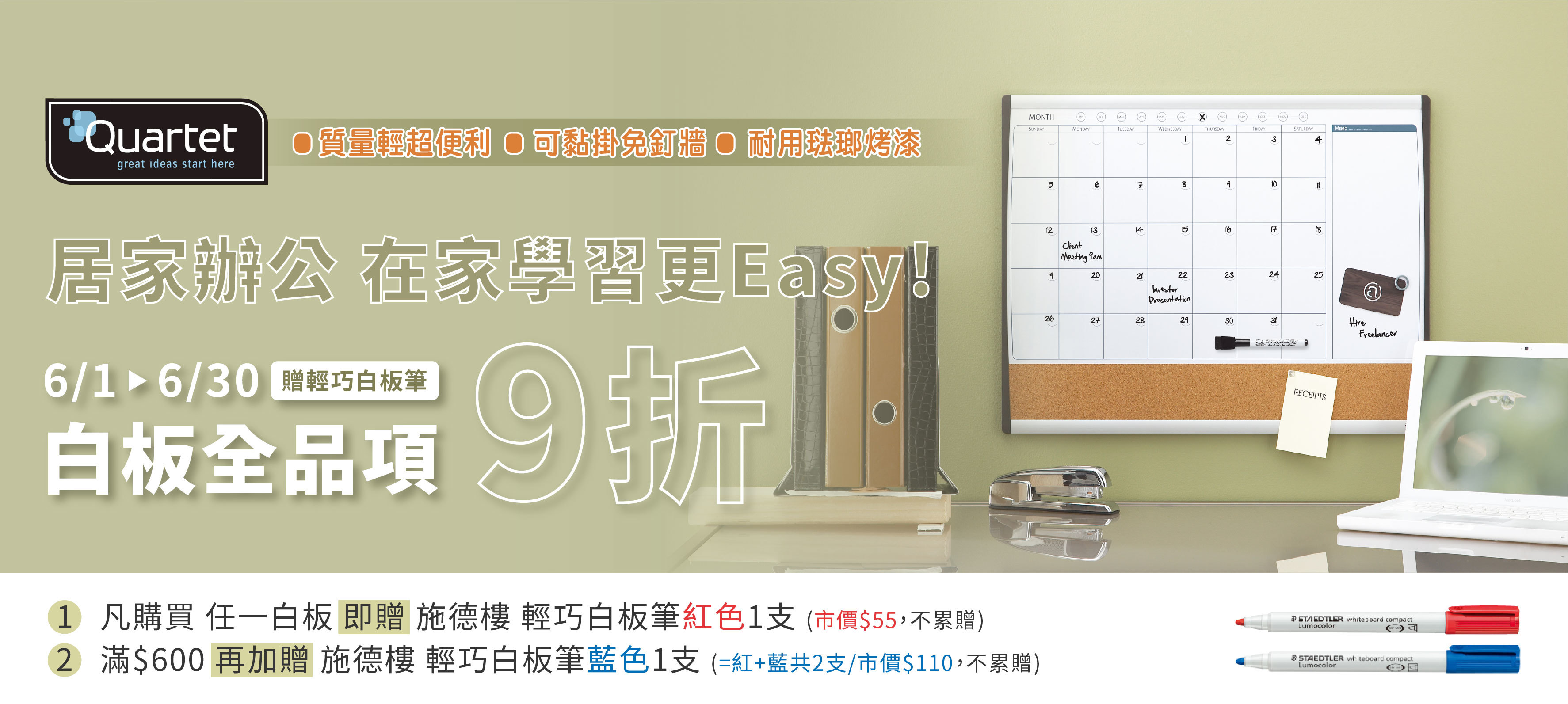 凡購買任一白板即贈紅色白板筆1支(不累贈)