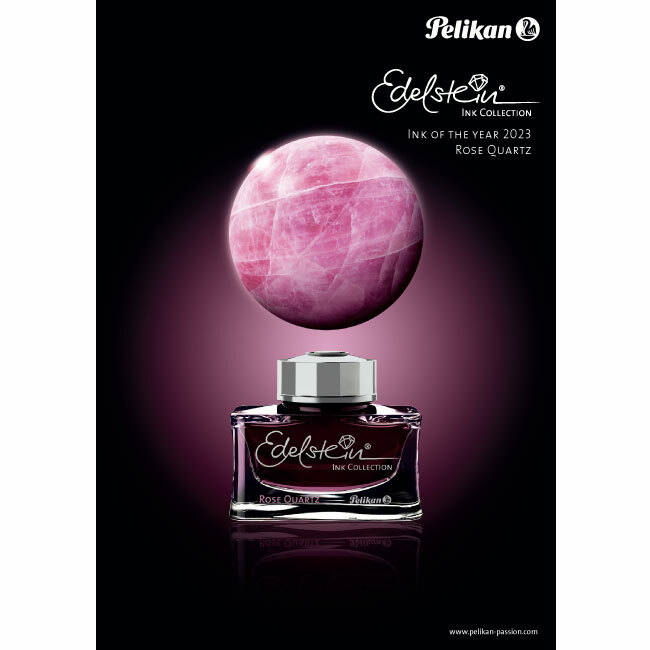 2023年百利金推出M205系列鋼筆「水晶玫瑰RoseQuartz」限定款,是為了傳遞情感而製作的筆,同樣搭配2023年度寶石墨水「水晶玫瑰」,瓶身以獨有的心形裝飾,更能為您傳播愛的信息!