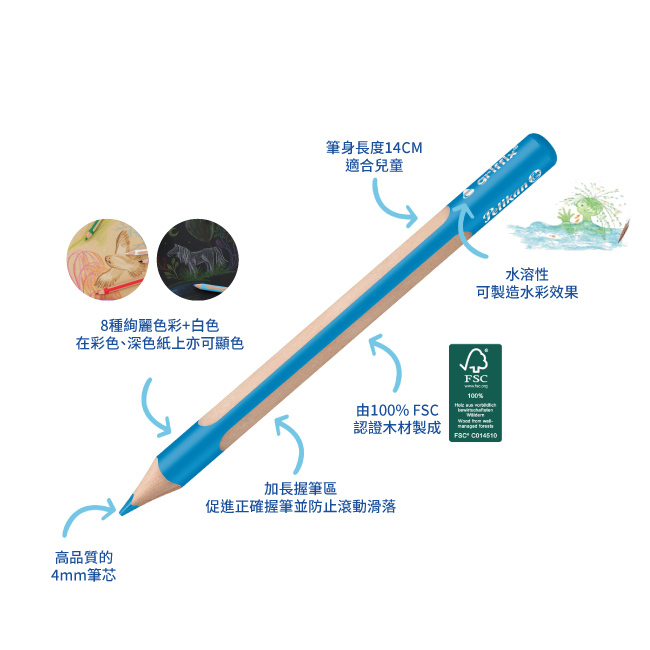 ˙水溶性色鉛,可加水渲染,製造水彩效果