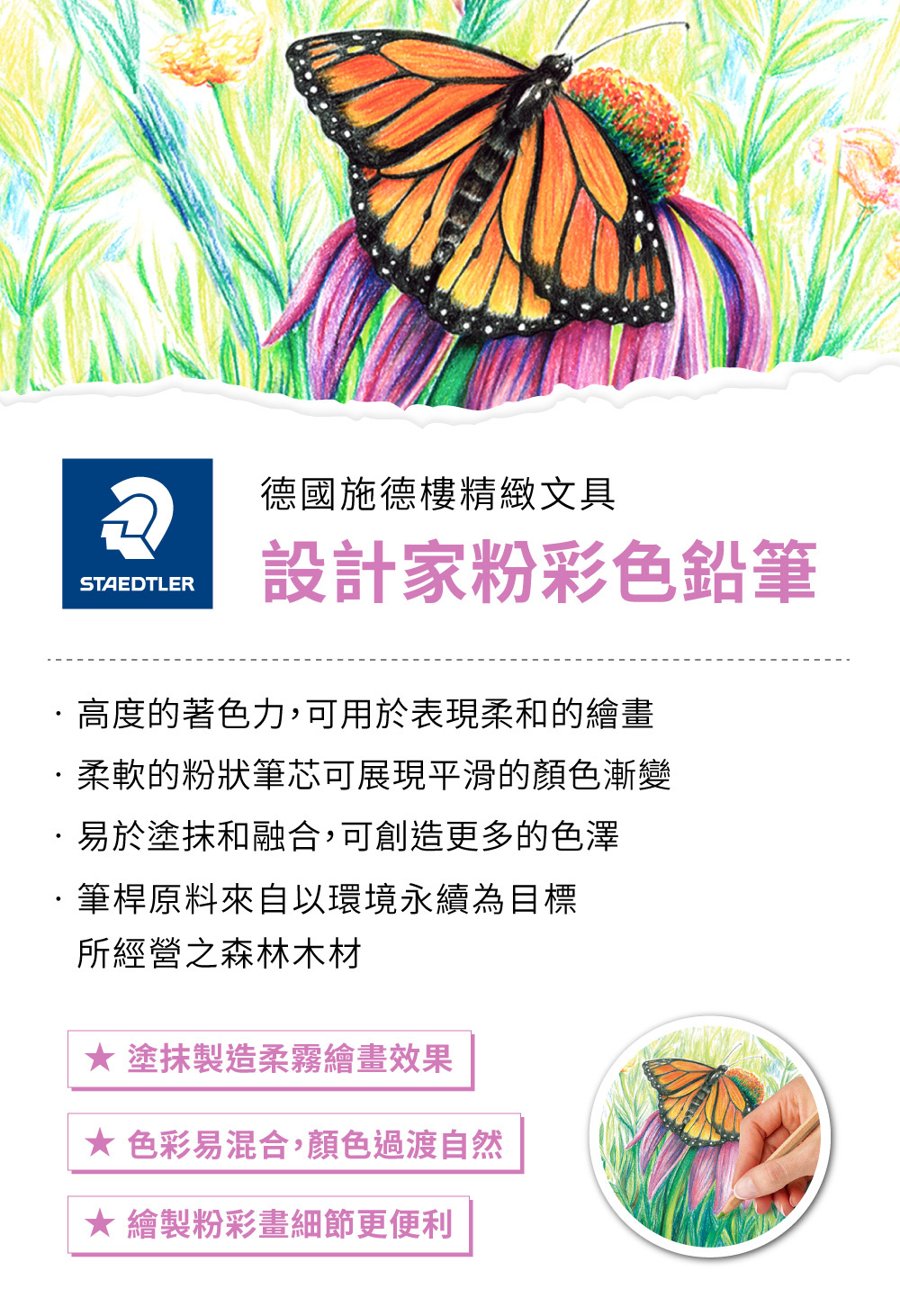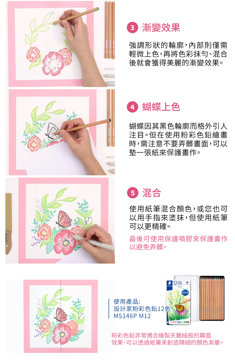 2. 柔軟的粉狀筆芯可展現平滑的顏色漸變